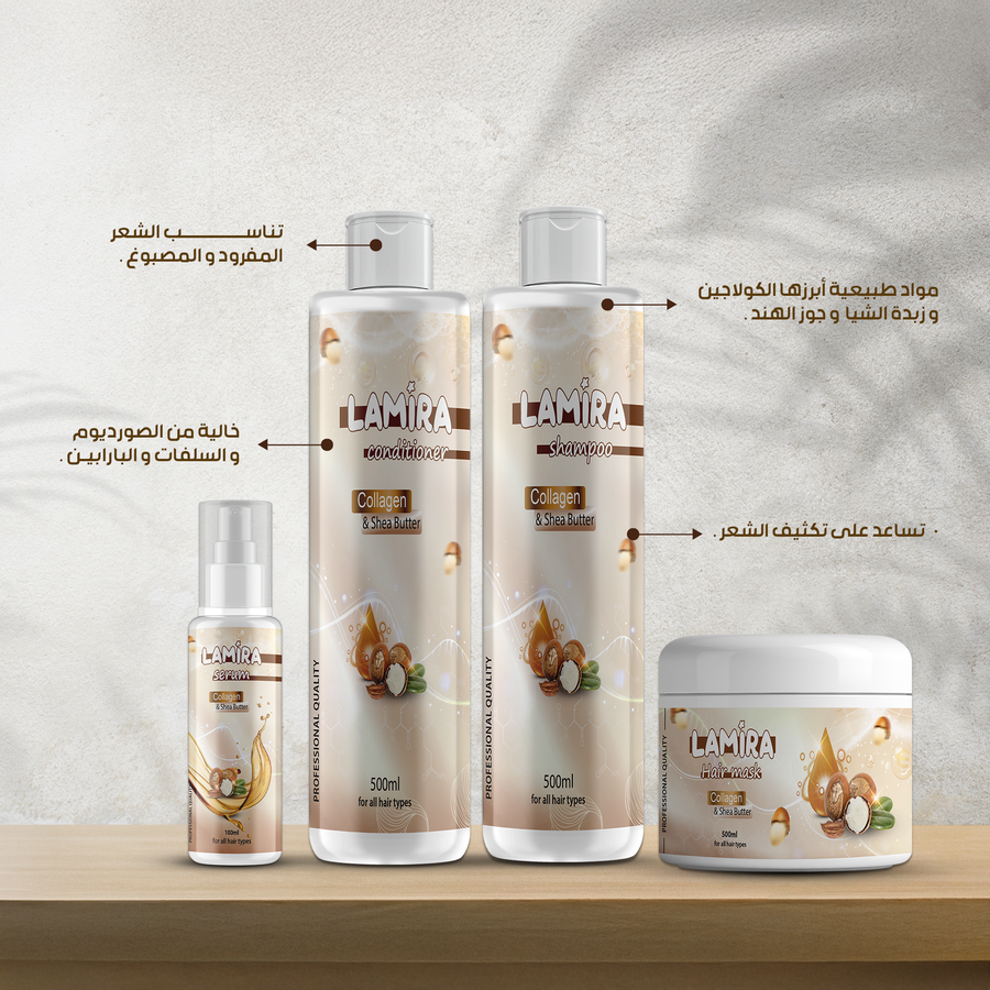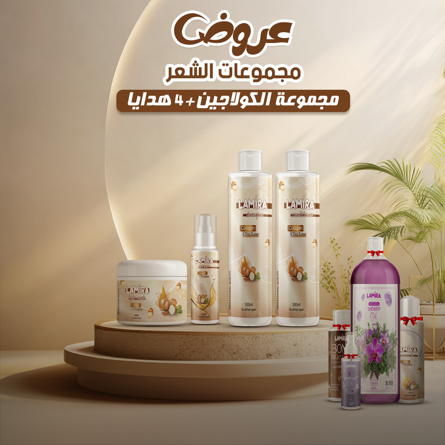 مجموعة La Mira Collagen للعناية بالشعر مع 4 هدايا مجانية. ترطيب عميق، تقليل التقصف، ولمعة صحية من أول استخدام. اطلبى الآن قبل نفاد الكمية.