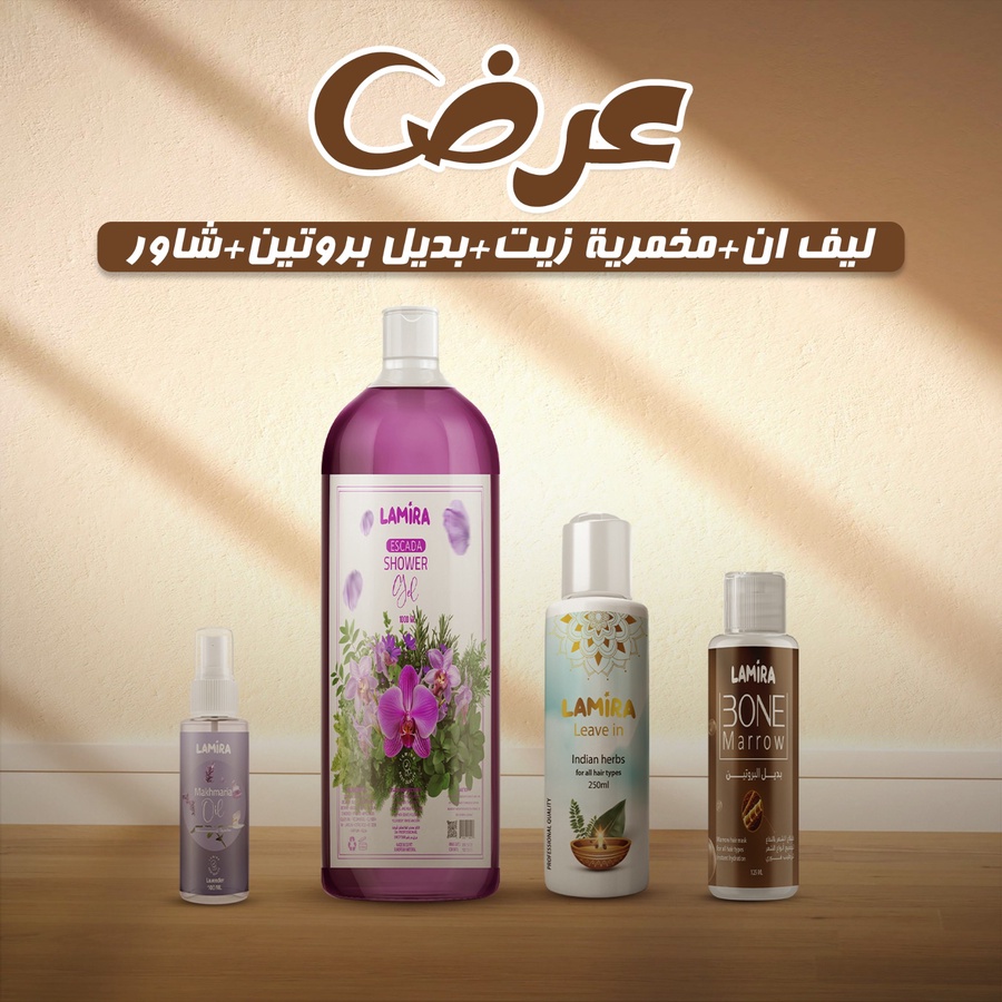 باكدچ متكامل يوفرلك روتين عناية سهل وفعّال في خطوة واحدة. الباكدچ بيجمع بين ليف إن بحجم 250 مل لترطيب الشعر وتسهيل التصفيف، ومخمرية الزيت 100 مل لتغذية الفروة ولمعة صحية، وبديل البروتين 125 مل لإصلاح التلف وتقوية الخصلات، وشاور جل 500 مل لتنظيف منعش وترطيب الجسم.